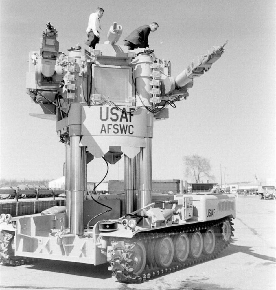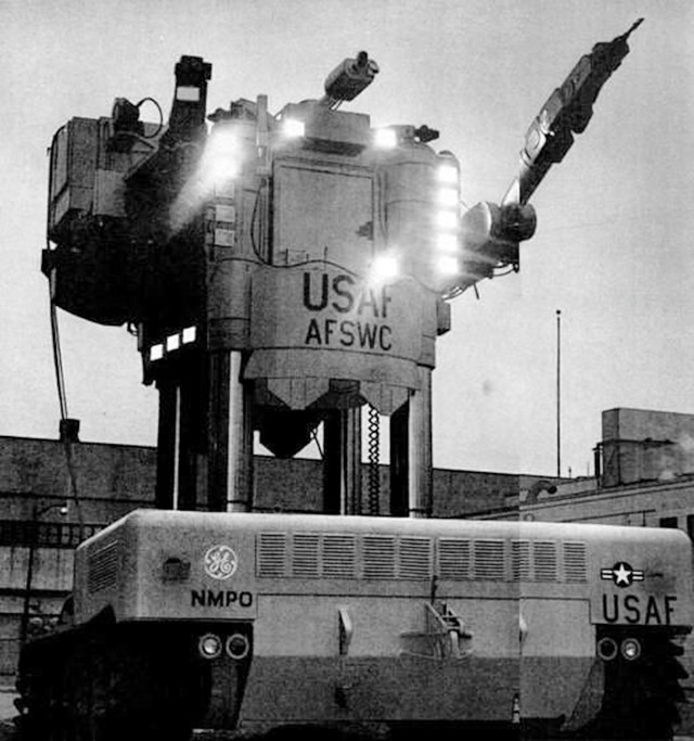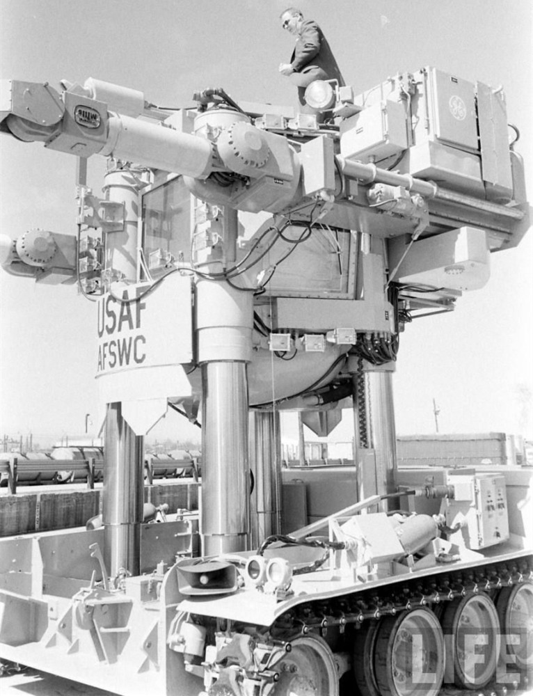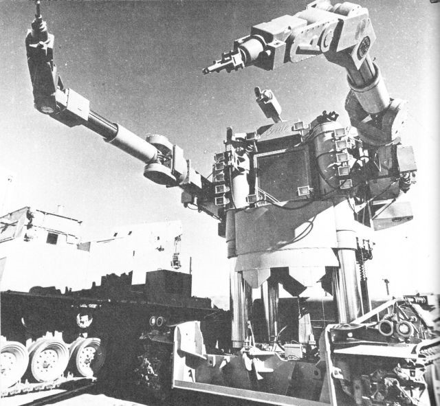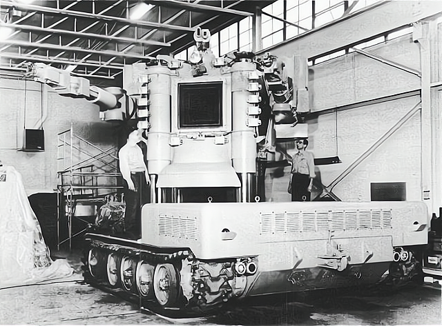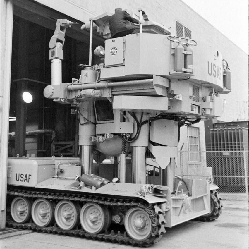 上世纪50年代,原子武器成为各大强国的宠儿,除了大众熟知的原子弹、核动力航母等武器,核动力坦克、核动力飞机也在发展中,当时人们已经认识到辐射造成的巨大伤害,因此核动力发动机的使用和维护成为一个大难题,不同于航母或潜艇可以拥有巨大的空间,飞机或坦克上使用的将是十分紧凑的核发动机,维修等工作需要非常精密的设备,为了保护工作人员同时又能完成工作,美国设计制造了“甲壳虫”移动机器人。 “甲壳虫”是一种实验装备,它被很多人看作是“初代机甲”,实际上它确实具备机甲的特征,只需要给它安装上武器系统就行。 “甲壳虫”是一部笨重的机械设备,全重达到了77吨,虽然看起来似乎并没有这么重,整车长约5.8米,宽约3.66米,高约3.35米。 设计师使用改进自M42 40毫米履带式自行防空炮的底盘,底盘更加宽大低矮,行走装置也经过修改加强,一台500马力的发动机驱动,只能达到每小时10英里的最大行驶速度(约16千米/小时),它还有一部驱动电机,可以让“甲壳虫”以每分钟15英尺的龟速前进(约4.6米/分钟),这主要用来微调姿态。对于一款以维护为主要任务的机甲来说,速度缓慢是完全可以接受的。 这台“机甲”是有人驾驶的,1名驾驶员位于车体上方安装的一座可旋转炮塔内(暂且将它称为炮塔吧),这座炮塔重达50吨,巨大的重量大多是为了保护操作人员免遭辐射伤害,在驾驶员四周有1英尺(约30厘米)厚的铅板,以及铅板内外两侧各半英寸(约15厘米)厚的钢板,驾驶员通过顶部的一座7.5吨重的舱门出入,舱门通过液压设备升举打开。 在狭窄的操作空间里,驾驶员连腿都无法伸展开来,更不要说站起来了,他只能通过正面23英寸(约58.4厘米)厚的玻璃窗口观察前方,窗口由7块含铅玻璃组成,对辐射的防护效果与周边的金属防护板相当。 如此厚重的金属保护并不白给,它能将辐射减少3000倍,可以在3000伦琴的辐射剂量下正常运行,如果一个健康人在无防护的情况下暴露于这种环境,很快就会因辐射痛苦不堪并在大约10分钟后死亡。 整座炮塔用4根不锈钢制成的液压支架支撑,驾驶员可以操控液压设备完成炮塔的升降,升降幅度达到15英尺(约4.57米),当然了,这个运动过程也相当缓慢。 炮塔两侧安装厚重坚实的金属机械臂,手臂有高达85000磅的拉力,配合底盘的运动可以推拉笨重的物件。当时还没有现在的智能技术,运动都靠驾驶员在炮塔内一点一点地操控设备完成,同时缺少传感器之类的设备,驾驶员无法感知施加的力量以及精确的移动位置,需要他聚精会神的操作,操作难度恐怕与动手术差不多,在1962年的首次公开演示中曾小心翼翼地夹起一枚鸡蛋。 一台3吨重的空调设备可以为驾驶员提供一个相对舒适的环境,因为核发动机往往也意味着高温,这台空调设备既可以提供合适的湿度,又能在外界温度零下25°~零上130°时维持驾驶室内恒温。 因为修理发动机不用考虑放射性尘埃等问题,因此“甲壳虫”的驾驶舱进气口并没有安装过滤器,空气通过弯曲的通道进入空调设备,一般辐射在任何角度都无法照射进内部。 驾驶员通过无线电设备与外部进行交流,车体上配有麦克风,驾驶员在驾驶舱内也能听到车辆外部的声音,这有利于他的驾驶操作。 “甲壳虫”原本是为修理核动力引擎而出现,但不久后人们意识到适用于坦克或飞机的小型核动力引擎在当时并不成熟,而且安全性也非常差,假如一架飞机安装了核动力引擎在飞行,就跟一枚悬在头顶的核弹差不多,一旦出现事故可能造成重大伤亡,因此“甲壳虫”的任务转成处理核污染,例如在一些事故地拾取收集带有放射性的物件等。 作为第一代“机甲”,“甲壳虫”在技术上存在很多问题,它曾出现液压油泄漏、机械臂无法运行、线路短路等问题,加上它本身不实用,因此只生产了一辆。