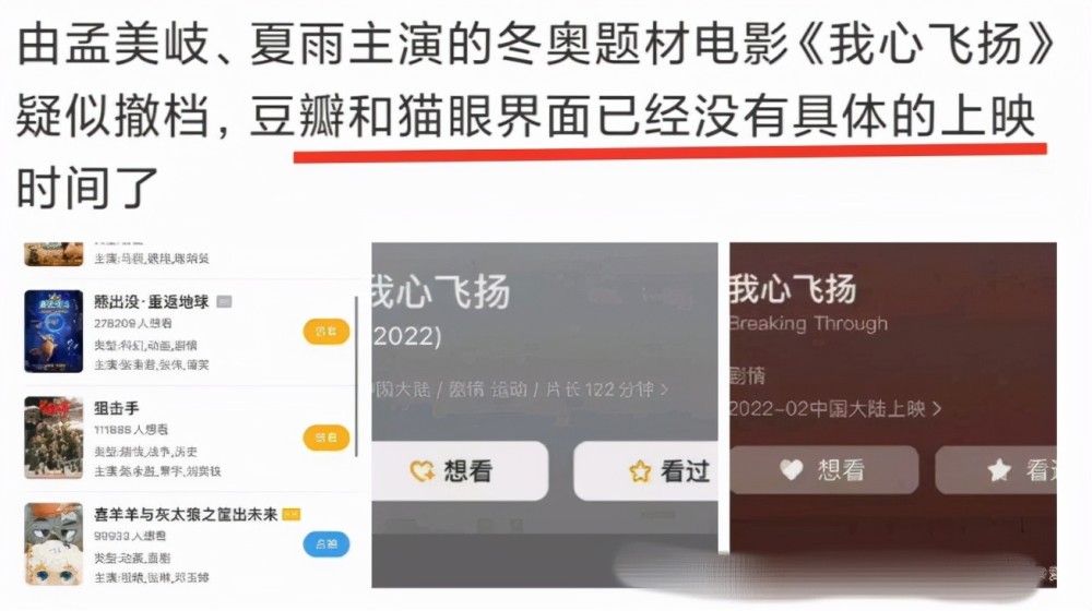 今年的春节档也一如既往的激烈,很多观众都非常期待这些在春节档上映的电影,毕竟对于观众来说,春节看电影甚至成为了一种习惯,所以很多电影都希望在这个特殊的时期杀出一条路来。 不过对比起之前春节档电影偏重轻松、幽默,这几年就有了明显的变化,出现了不少弘扬正能量的电影,就比如今年春节将要上映的《狙击手》等电影,这些电影也同样备受期待。不过2022年是一个非常重要的年份,因为很快冬奥会就要开始了,所以在今年的春节档也少不了这个主题的电影。 而《我心飞扬》就是一部讲述中国短道速滑队的故事的电影,而北京冬奥会将在大年初四开幕,所以春节档对于《我心飞扬》来说就非常重要了。可是没想到正是这样一部制作精良,本来备受期待的电影竟然传出了撤档的消息。 日前孟美岐的粉丝还在网上庆祝这部电影将在春节档上映,可是有不少网友发现,如今准备在春节档上映的电影在豆瓣和猫眼等平台上已经有了相关信息,在这些预备上映的电影中却没有找到《我心飞扬》。 距离春节也没有几天了,如果真的准备上映的话,相关的宣传和消息也应该露出了,可是《我心飞扬》却好像完全没有做这方面的准备。有不少网友怀疑难道《我心飞扬》是要撤档了吗? 这对《我心飞扬》来说可不是一个好的选择。毕竟这部作品是有时事主题的,正好迎合着冬奥会的举办,如果不在春节档上映,上映后的效果不仅会削弱,产生的损失也是巨大的。而《我心飞扬》为什么会如此呢? 其实还是因为女主孟美岐之前的丑闻,虽然这段时间孟美岐都非常安静,也很少出现她的信息了,但是沉默不代表着事情没有发生,特别是这次的电影还是如此正能量的主题,孟美岐的丑闻爆出后,更多网友都觉得让这样一位艺人出演这样的电影实在是不合适。 而且之前还爆出了孟美岐在拍摄的时候非常不敬业的消息,全程使用替身,一天只怕二十分钟,三天也就拍了四五条。但是后来在采访中,夏雨的说法就截然相反,不仅称赞孟美岐敬业,为了寻找感觉,还会往鞋里塞石头。不过夏雨所说的分不清运动员和演员的说辞实在是有些夸张了,如果孟美岐真的能达到如此程度,岂不是开启了一条新路。 其实不管这些传闻如何,如今《我心飞扬》是被孟美岐给连累了,起码在前期宣传的时候就受到了很大的限制,而且孟美岐之前知三当三的行为的确是无可辩驳,虽然孟美岐表示自己并不知情,可是聊天记录却骗不了人。 只是惋惜于这部电影的制作人员,耗费了如此多的心力拍摄了这样一部电影,却因为演员的个人品德有亏,使得之前的心血就要付之东流,这真是太可惜了。不过现在虽然电影没有出现在平台的春节档名单上,也可能后续会努力再做工作。但是肯定的是,观众对于这部电影的期待会因为孟美岐的丑闻而大打折扣。