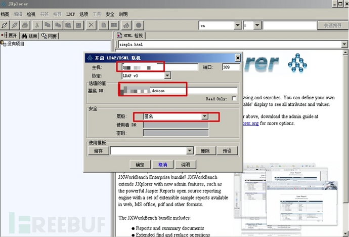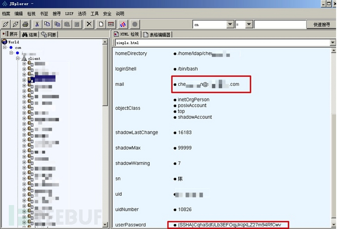 得到了新的企业邮地址(mail.xxx-xx.com),然后就去新的企业邮上测试了下这俩账号,一个都登不上去,然后这条路暂时就走不通了,继续去github上翻信息。 翻信息的过程中发现了github用户xxx的一个项目learn_xxx中有很多关于该公司的信息,于是把这个项目拉到本地,审计一下。 1.3 learn_xxx项目审计对项目进行审计,该项目中有多个子项目,大部分为内网使用项目,审计过程中发现该公司的公网LDAP服务器地址。  1.4 ldap服务器信息收集经过探测,该ldap服务器存在匿名访问,无需密码即可访问,去网上找了个图形化工具(jxplorer),填上基底(DN)即可访问: