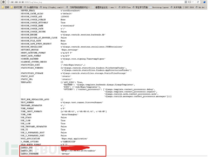 (运维配置平台弱口令admin admin) 在运维配置平台中,只能看到部分服务器信息,还是无法登陆服务器,但是在某个功能的报错信息中,泄露了外网的zabbix的密码:
