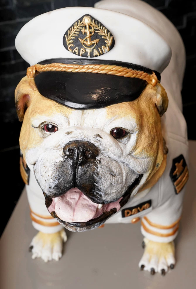 据《太阳报》当地时间7月4日消息, 一条名叫戴夫(Dave)的英国斗牛犬,得到了一份别样的9岁生日礼物,女主人劳伦·布莱克 (Lauren Blake)为它定制了一个等身大小的生日蛋糕。蛋糕做得实在是太逼真了,和戴夫的真身在一起,远远看去足可以以假乱真。 据悉戴夫的等身蛋糕是由劳伦的朋友设计的,用了40多个小时才完成,采用了糖霜和食用色素来呈现出戴夫的“美貌”。而这样的一个和胖胖的英国斗牛犬等身大小的仿真蛋糕,自然是价格不菲,花费了劳伦3000英镑(约2.7万RMB)。 不过在劳伦看来,花重金为自家汪星人庆生是值得的,“我们爱戴夫,它给我们带来了很多欢乐”,“能够为庆祝它的特殊日子而做出一些美好的事情,真是太棒了”。 蛋糕师傅录制了一段为戴夫制作蛋糕的视频,可以很多方形蛋糕被组合在了一起,就如同砌墙一般,而奶油则充当了“水泥”的作用。 戴夫和它的生日蛋糕在一起,不仔细看还真是难辨真假。 而对于戴夫为何要穿水手服,劳伦解释说“它喜欢船”,“它坐过一次船,我们根本无法让它离开那里,所以有时候我们会给它穿上水手服,这真的很有趣,而戴夫也非常喜欢”。 英国斗牛犬也被叫做老虎犬,虽然长得很凶猛,但性格还是比较温顺的,而且也成为了英国特有的标志物。F1新任七冠王刘易斯·汉密尔顿的心爱宠物也是一只英国斗牛犬,名叫罗斯科。而明星家的宠物犬还是个“网红”,被打造了一个单独的社交媒体账号,拥有超过30万的粉丝,而且它和汉密尔顿一样,都吃素。